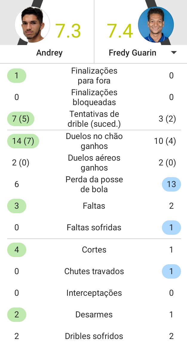 Veja números de Andrey e Guarín contra o Cruzeiro