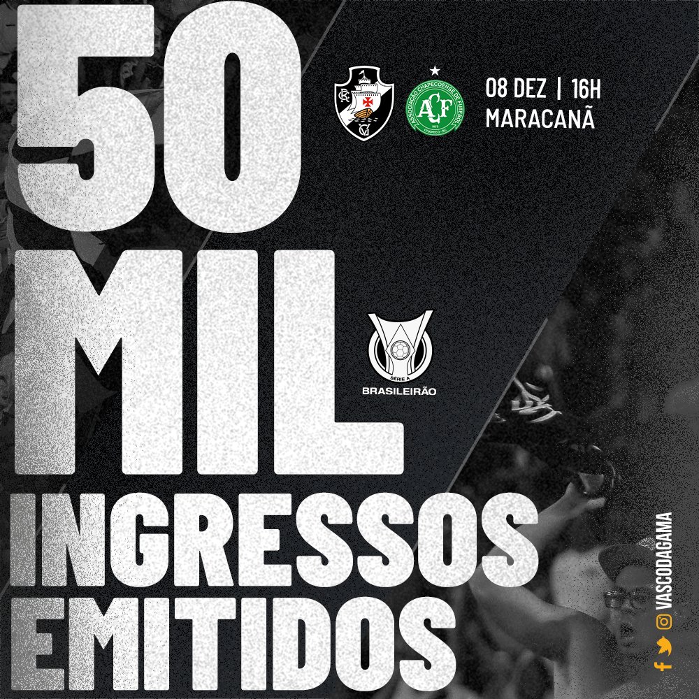 Já foram emitidos 50 mil ingressos para Vasco x Chapecoense