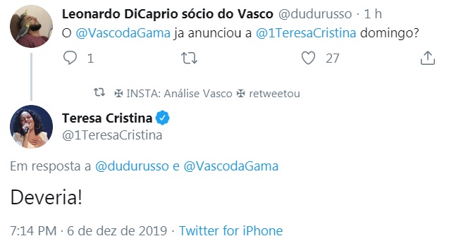 Fonte: Twitter da cantora Teresa Cristina