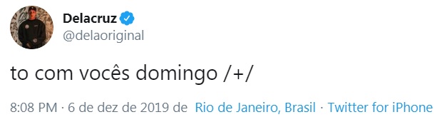 Fonte: Twitter do cantor Delacruz