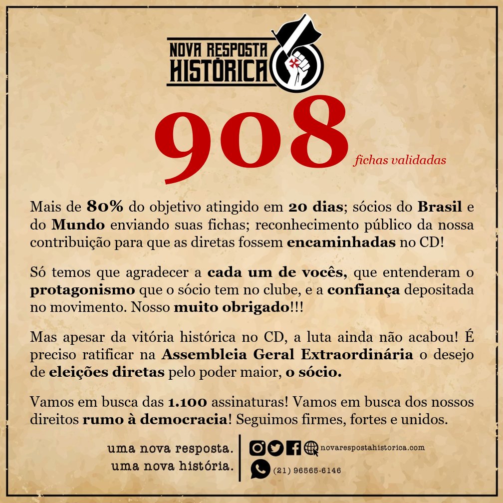 Movimento Nova Resposta Histórica chega a 908 adesões