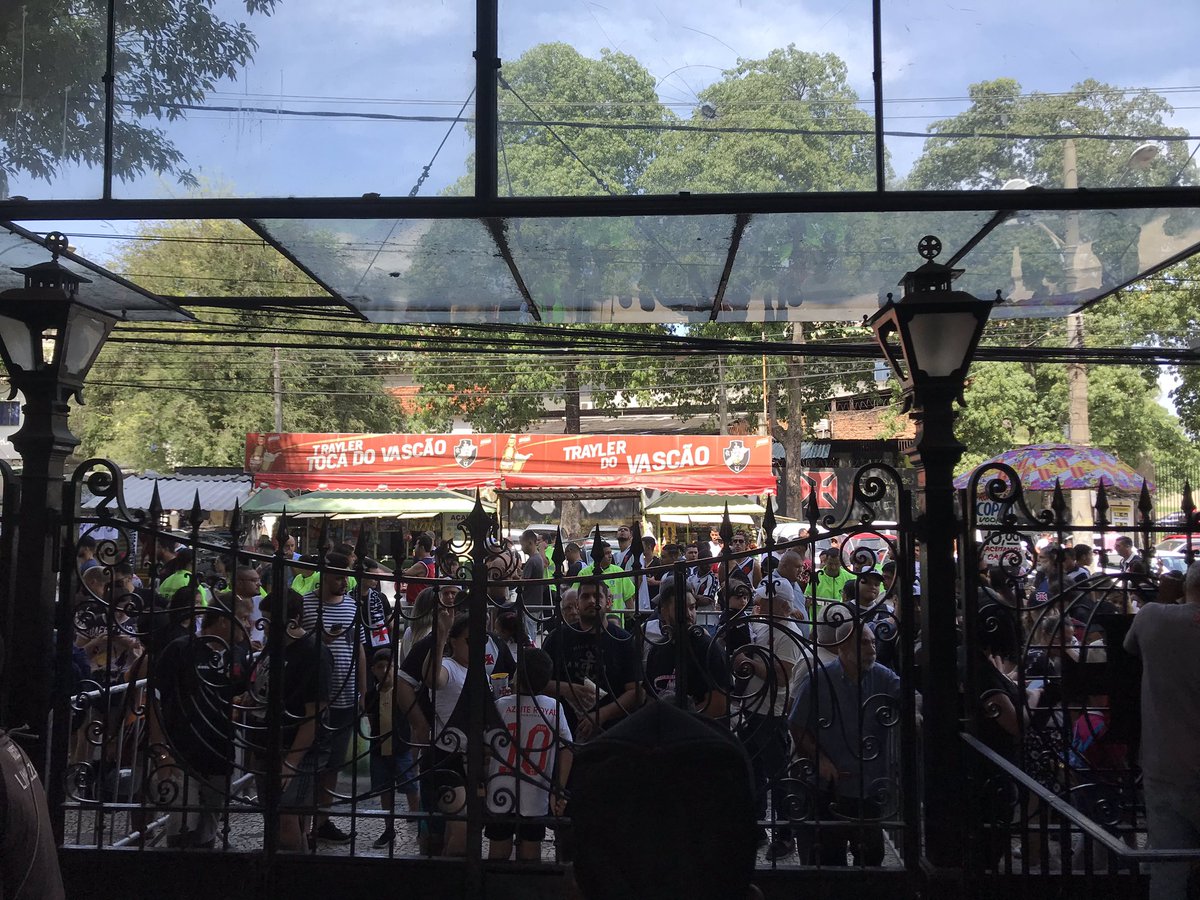 Torcedores aguardam a entrada em São Januário em frente ao portão da social; veja foto