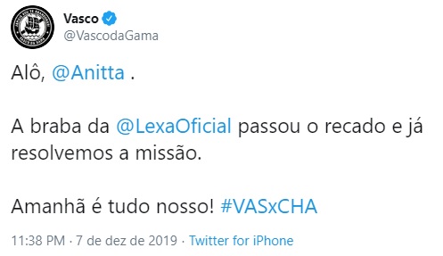 Em resposta a @VascodaGama @Anitta e @LexaOficial