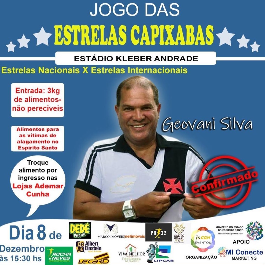 Ídolo vascaíno Geovani participa de jogo beneficente neste domingo em Cariacica