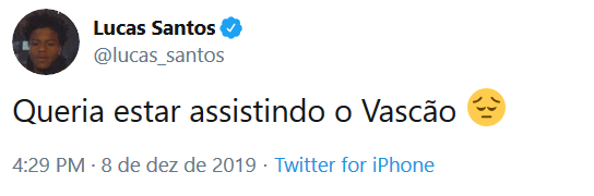 Hoje emprestado ao CSKA-RUS, Lucas Santos diz no Twitter que gostaria de estar assistindo ao jogo do Vasco