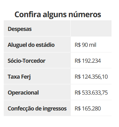 No borderô divulgado no site da Confederação Brasileira de Futebol (CBF), é possível ver todas as despesas. No total, foram pouco mais de R$ 1,5 milhão. Além disso, o clube, é claro, teve que pagar por retenções (impostos). Só da parte operacional do jogo, o Vasco arcou com R$ 533 mil.