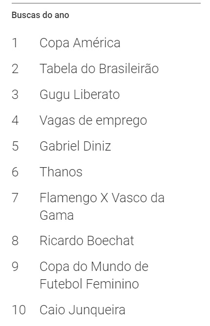 'Flamengo x Vasco da Gama' foi a 7ª pesquisa mais feita no Google Brasil em 2019; Vasco foi o 5º clube mais buscado
