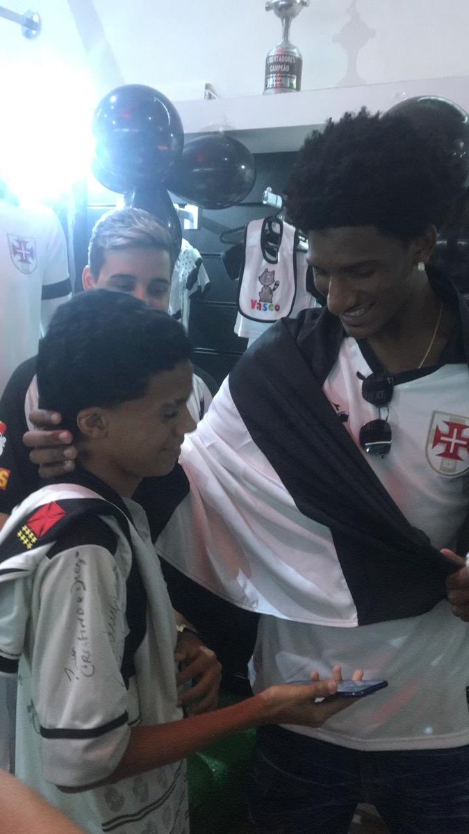 Pequeno vascaíno se emociona ao encontrar Talles Magno; veja fotos