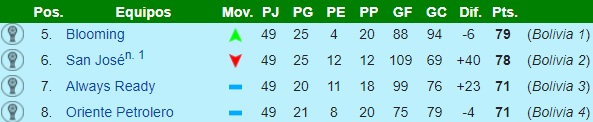 O "Bolívia 4" (8º colocado no somatório dos pontos dos Torneios Apertura e Clausura) será o adversário de estreia do Vasco na Copa Sul-Americana, com jogos marcados para os dias 05/02 (em São Januário) e 19/02 (na Bolívia). Neste momento, quatro times podem ocupar a vaga: Oriente Petrolero, Always Ready, San José e Blooming. Os dois primeiros são os favoritos; os dois últimos têm apenas chances matemáticas. O Always Ready manda seus jogos em El Alto, a 4.090m de altitude; já o Petrolero é de Santa Cruz de la Sierra, quase a nível do mar.