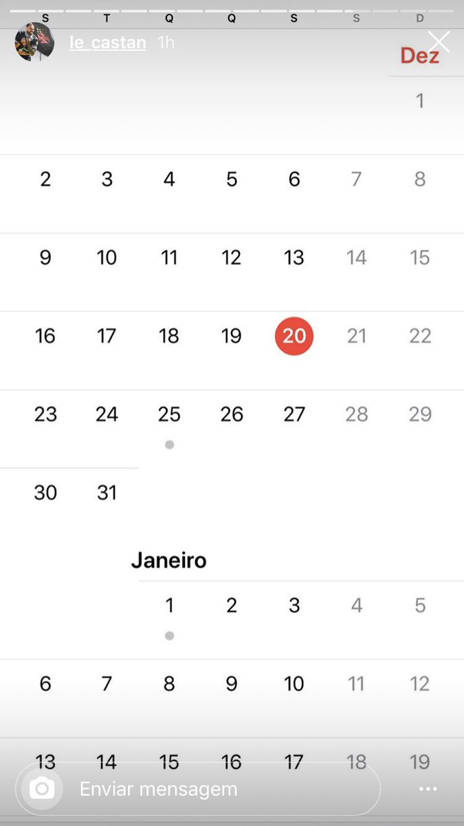 Castan fez essa postagem no Stories do Instagram. Não se sabe o que ele quis dizer com isso, sabe-se apenas que hoje, dia 20, é a data limite dada pela diretoria do Vasco para o pagamento dos atrasados. Clube corre para quitá-los até o fim desta sexta