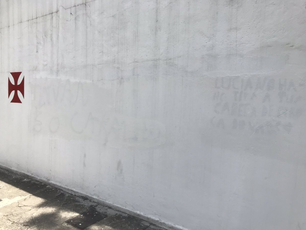 Mais uma foto da pichação contra a Havan na sede náutica do Vasco que foi apagada (crédito ?: Bruno Braz / UOL Esporte)