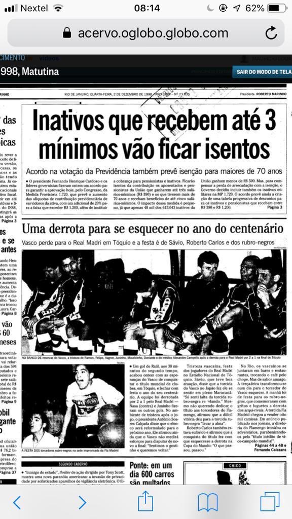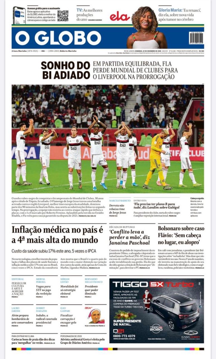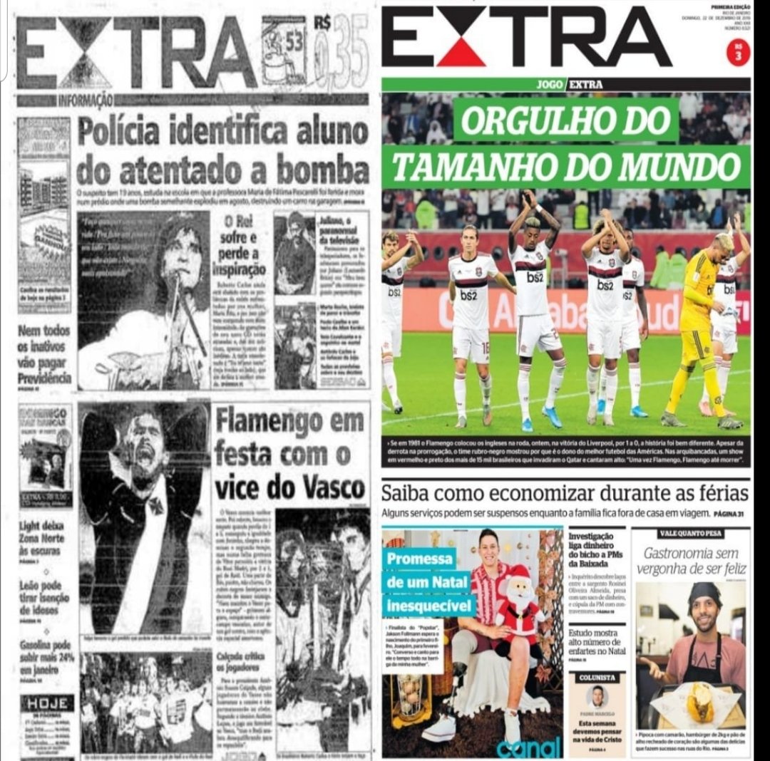 Ex-VP de marketing Bruno Maia compara capas de jornais cariocas de 1998 e de 2019 um dia após a final do Mundial de Clubes; veja