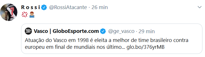 Rossi celebra, em rede social, 1º lugar do Vasco em enquete sobre finais em uma edição de Mundial de Clubes