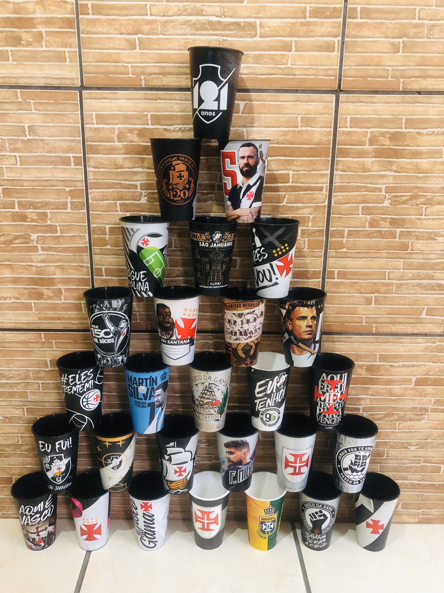 Torcedor faz pirâmide com copos do Vasco; veja
