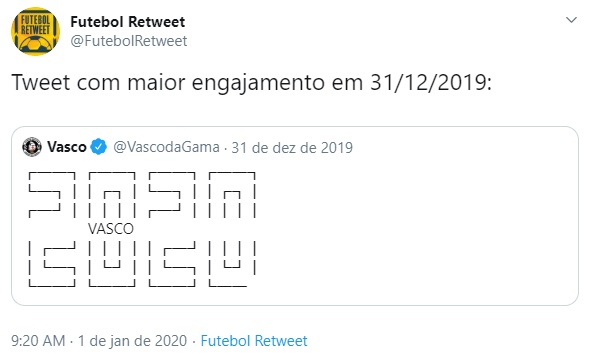 Tweet de maior engajamento do futebol brasileiro em 31/12 foi do Vasco