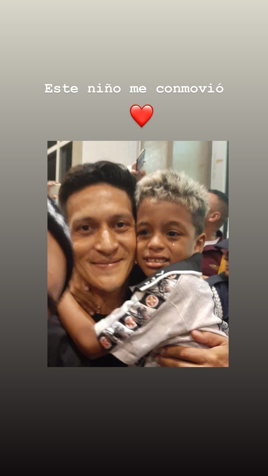 Germán Cano posta foto com pequeno vascaíno chorando ao encontrá-lo e escreve: 'Este menino me comoveu'