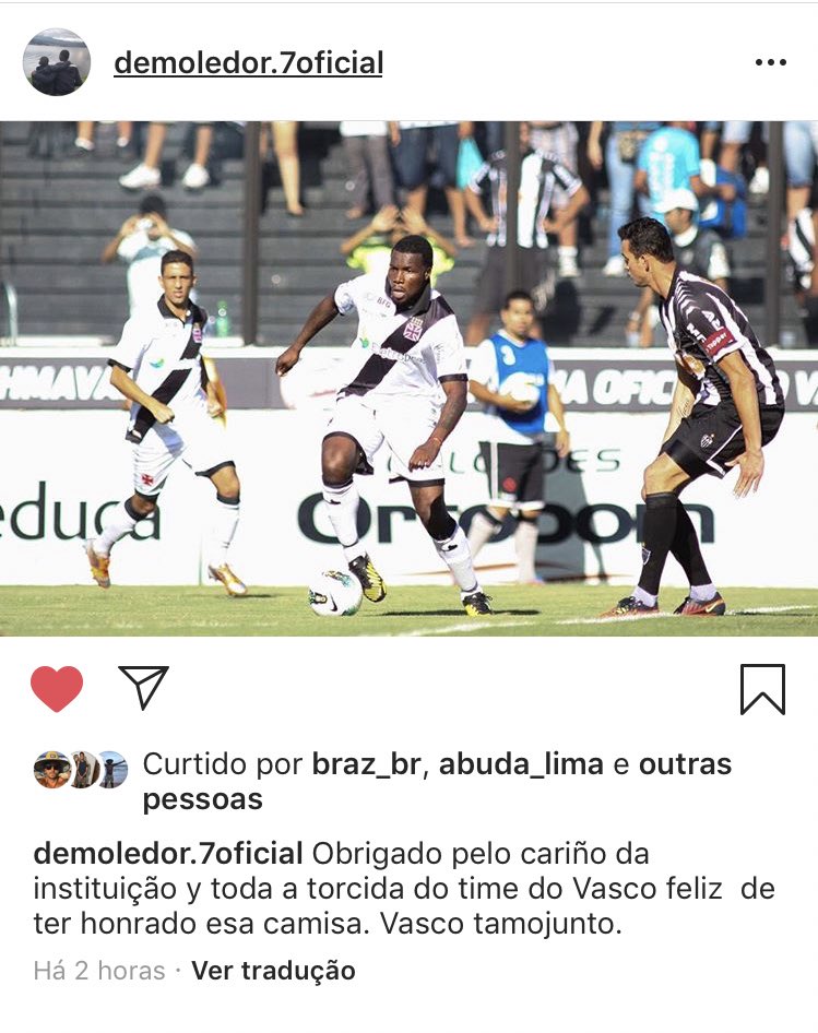 Tenorio Demolidor relembra passagem pelo Vasco em publicação no Instagram