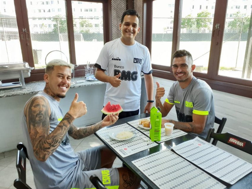 Quem esteve no CT do Almirante pela primeira vez foi o atacante argentino Germán Cano, único reforço do Cruzmaltino para 2020 até aqui. Ele foi recepcionado pelo também atacante Talles Magno, que posou para uma foto com o novo camisa 14 do Cruzmaltino.
