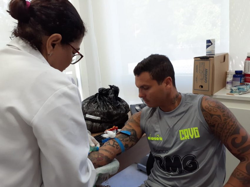 O clima pela manhã também foi de descontração. Os Meninos da Colina Alexandre, Lucas Santos, Talles Magno e Lucão botaram a resenha em dia, mas o destaque ficou por conta do meia Marcos Júnior, que apareceu no Centro de Treinamento com o cabelo descolorido.