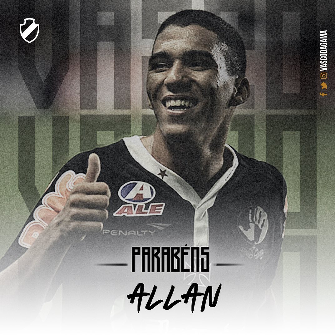 Via rede social, Vasco parabeniza Allan, cria da Colina, aniversariante do dia
