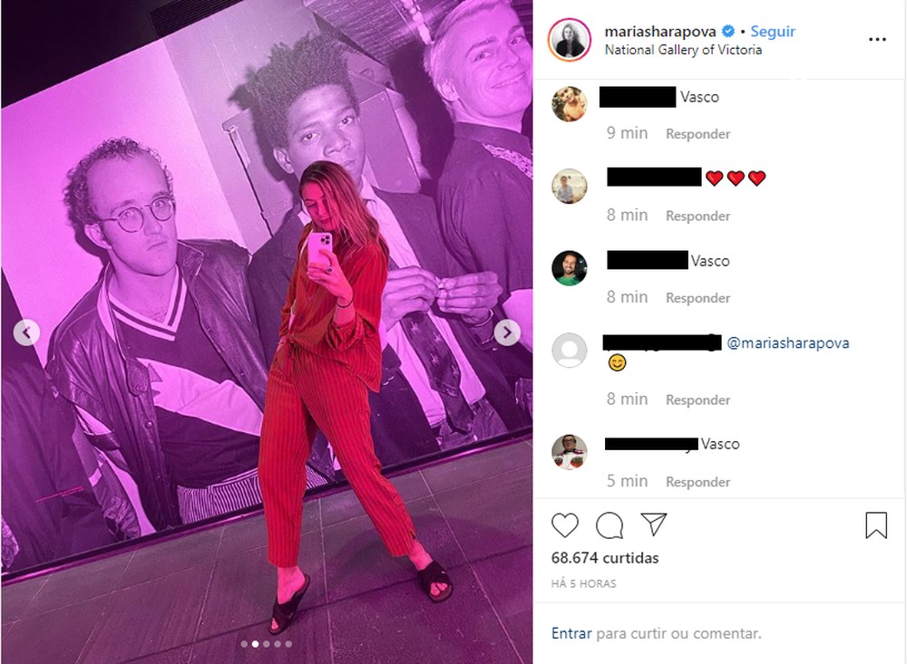Maria Sharapova e Vasco. Uma combinação que, a princípio, não faz muito sentido, mas que chamou os olhos da internet nesta quinta-feira. O motivo? A tenista ex-número 1 do mundo postou em suas redes sociais um registro de sua visita à National Gallery of Victoria, em Melbourne, na Austrália. Em uma das fotos, na parede da galeria, diante da tenista, está um homem vestindo a camisa do Cruz-Maltino.