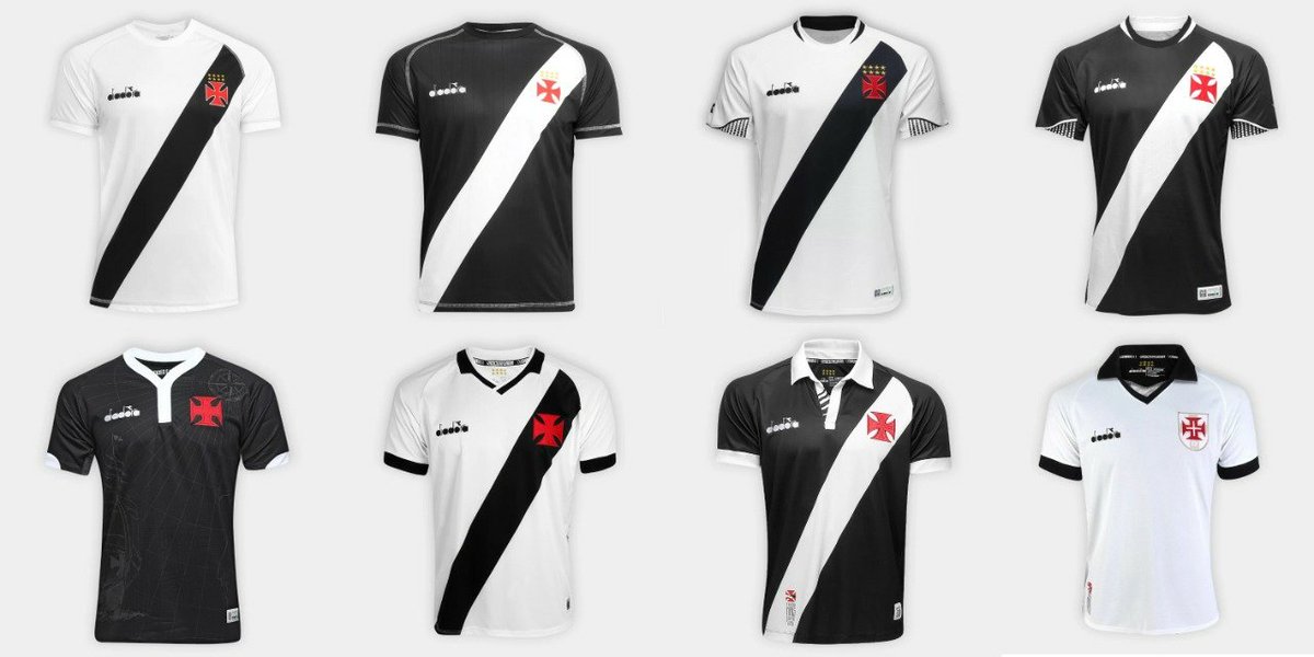 Detalhe aí: somente as 4 últimas camisas foram desenhas pelo Vasco. As 4 primeiras foram feitas pela Diadora.