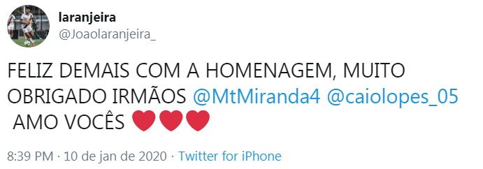 10/01/20 - Juniores: No Twitter, jogadores vascaínos comemoram vitória e classificação na Copa SP