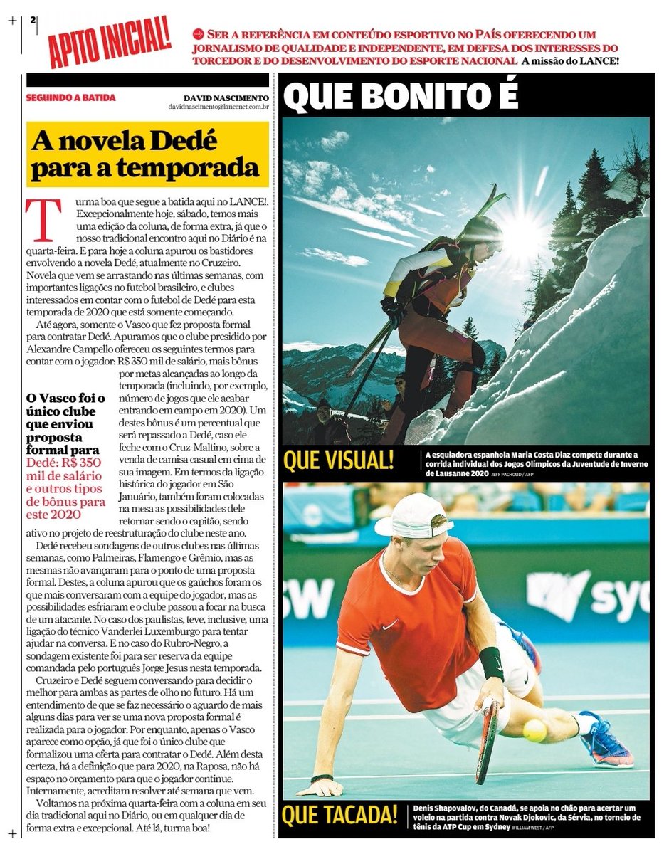 E para quem não comprou a edição impressa do @lancenet deste sábado, teve edição extra nacional da minha coluna - normalmente é publicada toda quarta no Diário. Tema da vez foi a novela envolvendo o futuro de Dedé. Destrinchamos os atuais bastidores da negociação. Espiem! ?⚽️?