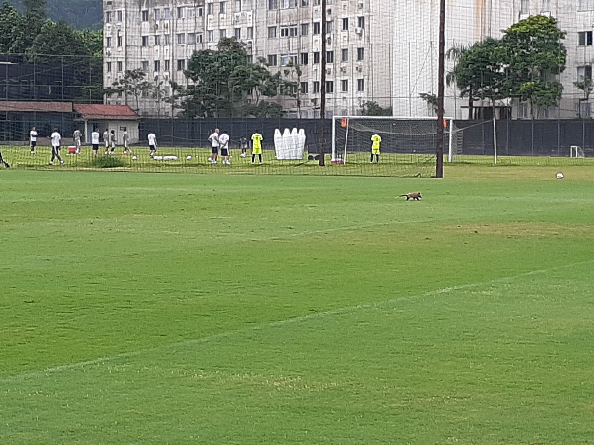 Gambá aparece no início do treino do Vasco nesta 2ª-feira no CT do Almirante; veja foto
