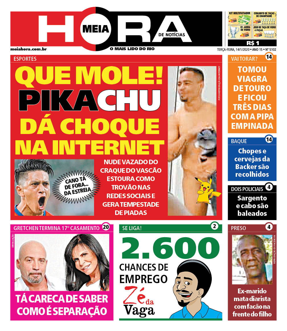 'Nude' de Yago Pikachu vazado em vestiário é capa do jornal Meia Hora