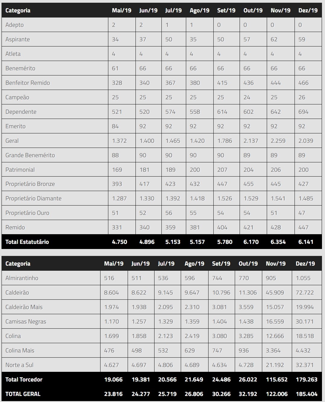 Vasco fechou 2019 com 185.404 sócios, sendo 179.263 sócios-torcedores; veja números e lista