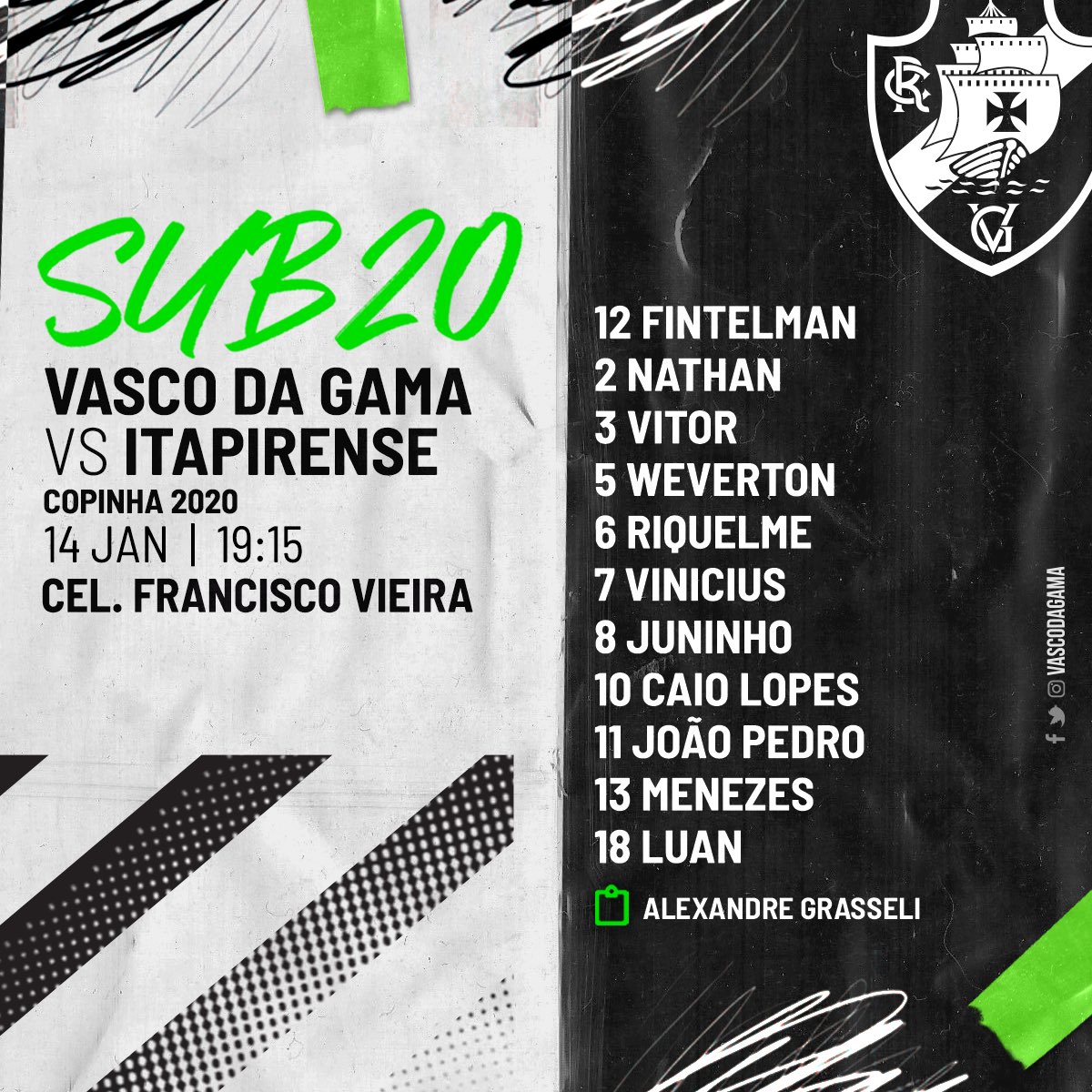 Juniores: Veja a escalação do Vasco para o jogo contra a Itapirense