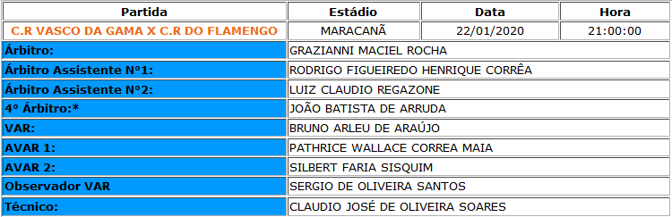 Grazianni Maciel Rocha apitará Vasco x Urubu, no dia 22/01; Bruno Arleu de Araújo será o VAR