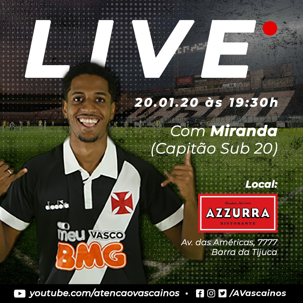 Mais uma Live especial. Hoje, às 19h30, vamos receber a presença do zagueiro @MtMiranda4, capitão do time Sub-20, no Azzurra Ristorante, no Shopping Rio Design Barra. Flavio Dias estará também com #Bismarck10 e Roberto Dinamite.