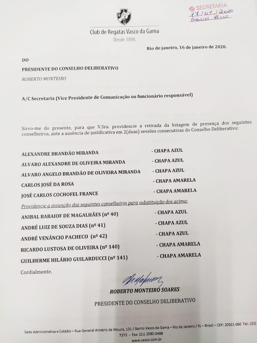 Cinco integrantes do Conselho Deliberativo do Vasco são substituídos por suplentes