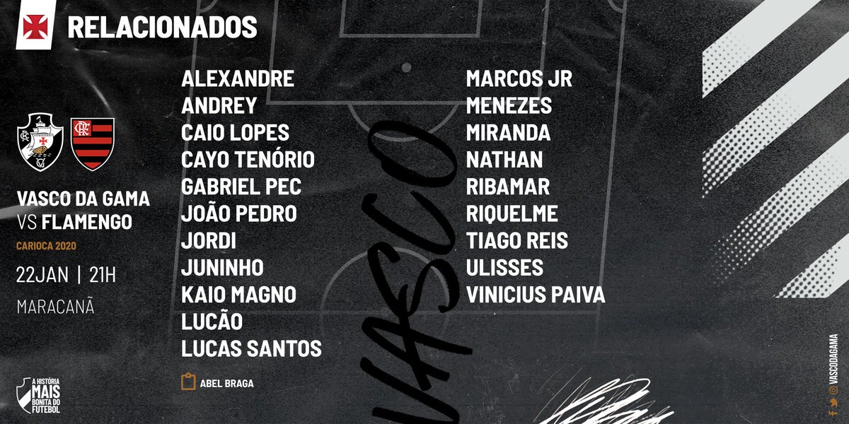 13:46 - Dos 20 vascaínos relacionados para o clássico, 18 são formados em São Januário