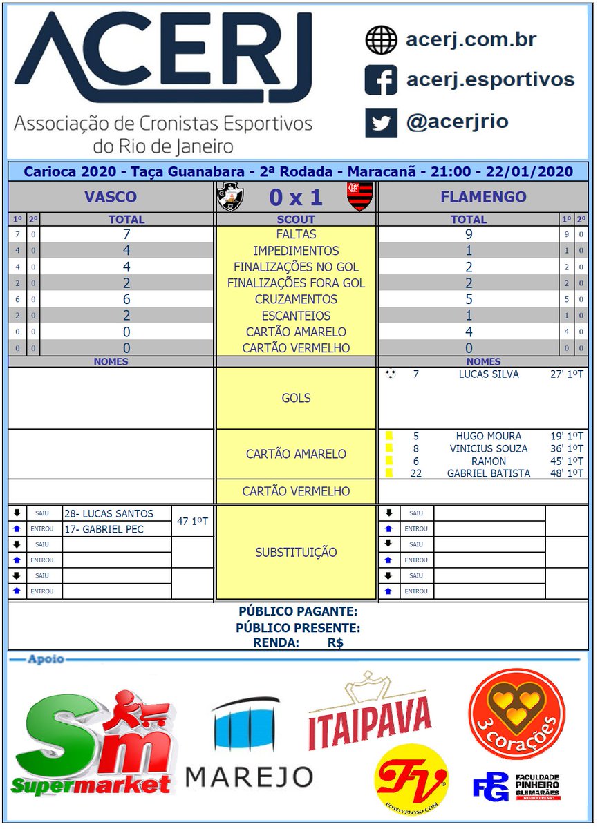 Scout do 1º Tempo de Vasco e Flamengo pela 2ª Rodada da Taça Guanabara 2020 #acerjinforma #VASxFLA #Cariocão2020