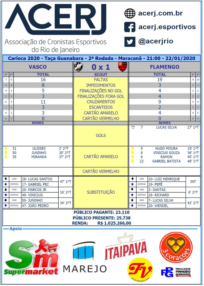 Scout Final de Vasco e Flamengo pela 2ª Rodada da Taça Guanabara 2020 #acerjinforma #VASxFLA #Cariocão2020