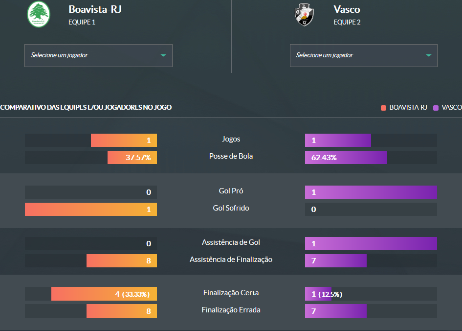 Confira as estatísticas de Boavista 0 x 1 Vasco