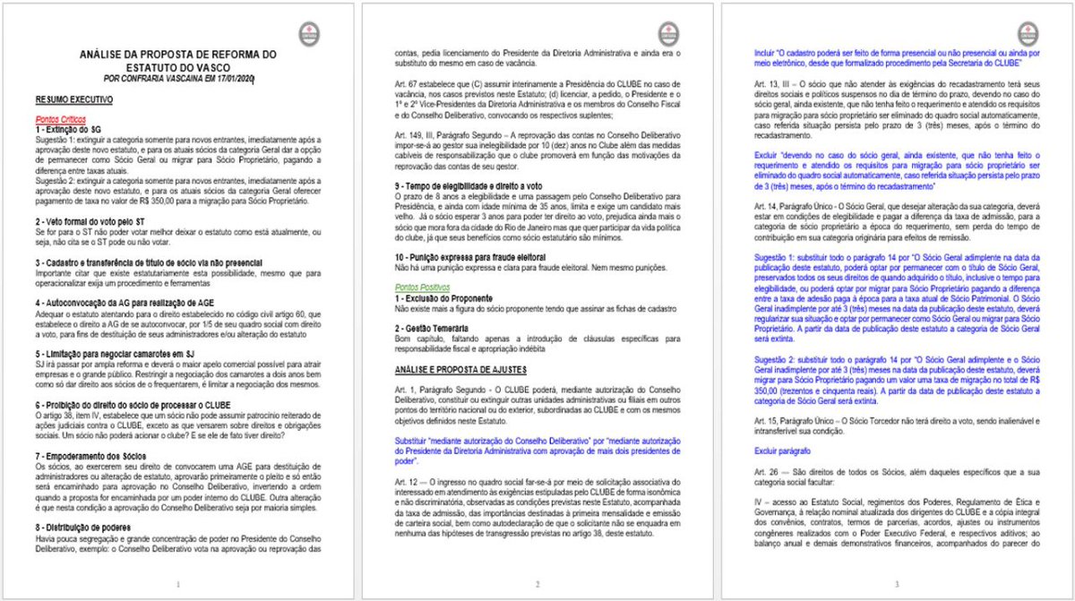 Mantendo também o nosso compromisso de transparência com você, torcedor, trazemos aqui o documento que foi enviado à comissão que trabalha na peça que será discutida na reunião do dia 29.