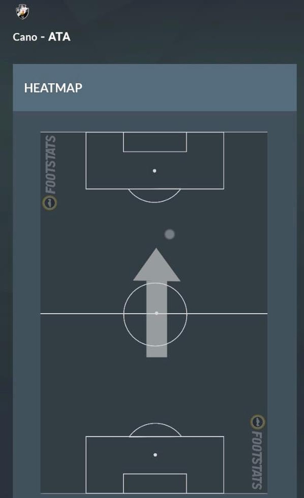 Os números e o mapa de calor mostram um Cano ainda pouco participativo em dois primeiros jogos com a camisa do Vasco, no empate com o Bangu e na vitória sobre o Boavista. O argentino, ao menos neste início, tem se mostrado um típico centroavante. Joga centralizado, com pouca movimentação e toques na bola, mas decisivo quando necessário.