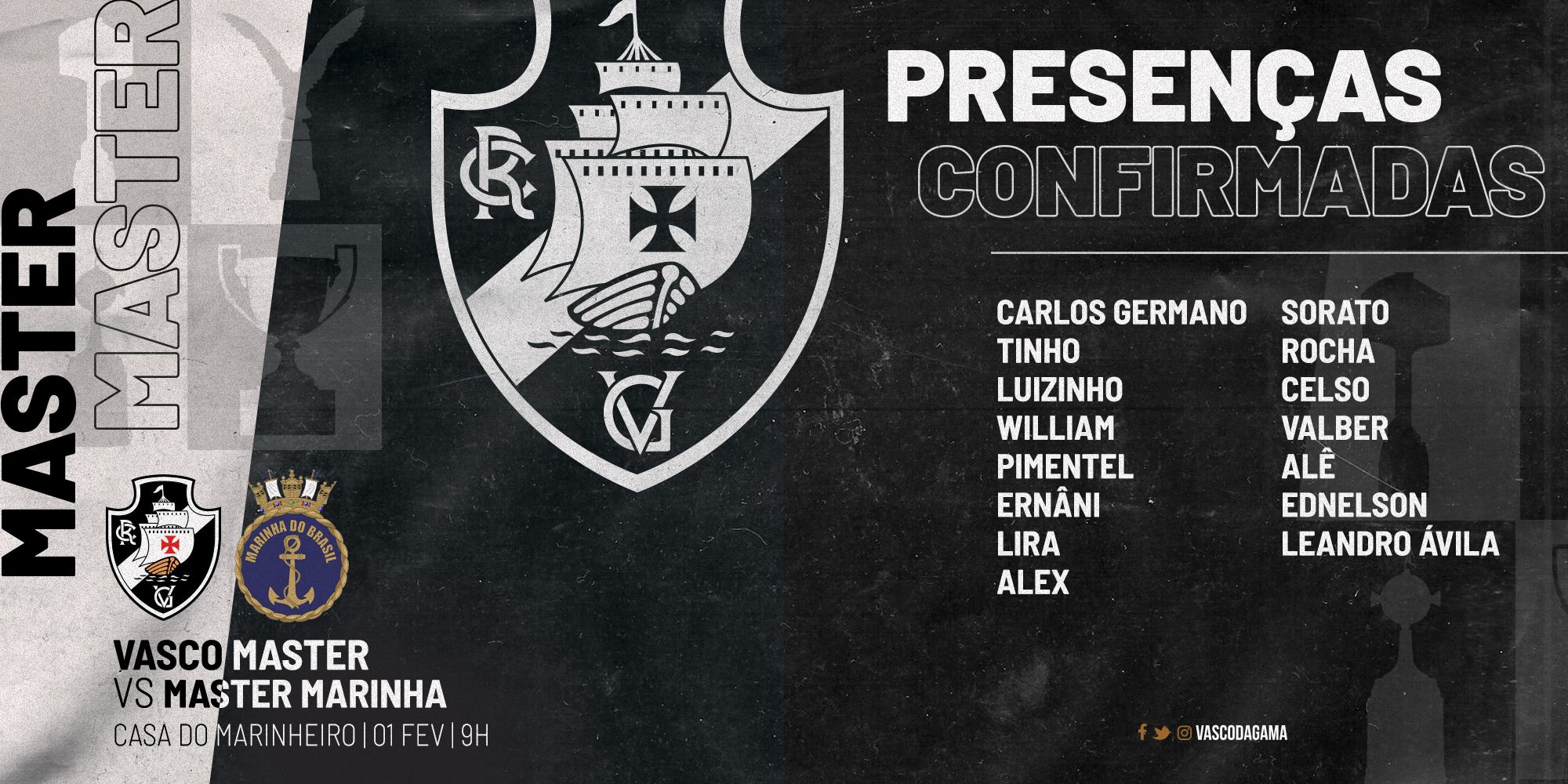 A equipe Master do Vasco terá um novo compromisso no próximo sábado (1/2). Será um confronto diante do time Master da Marinha, na Casa do Marinheiro, às 9h. A equipe cruzmaltina será formada por nomes como Carlos Germano, Tinho, Luizinho, William, Pimental, Ernâni, Lira, Alex, Sorato, Rocha, Celso, Valber, Alê, Ednelson e Leandro Ávlia.