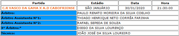 19/03/19 - Confira o borderô e a súmula de Cabofriense 2 x 0 Vasco pela Taça Rio