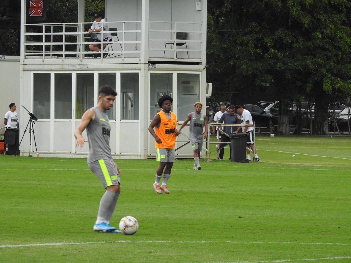 Abel assiste ao treino em contêiner ao lado do executivo de futebol André Mazzuco. #gevas