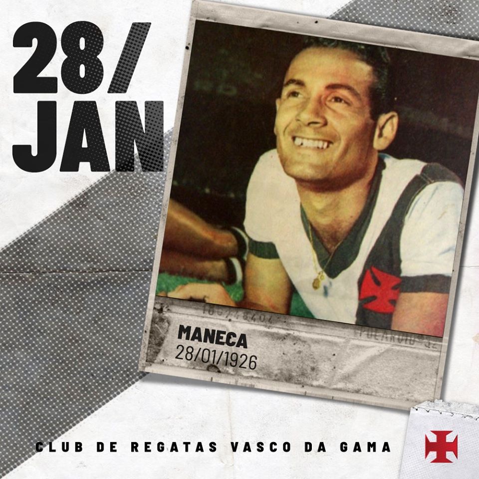 Há 94 anos nascia Maneca, eterno ídolo cruzmaltino. O baiano chegou no #VascoDaGama em 1946 e já no ano seguinte ganhou o Campeonato Carioca. Pelo Gigante da Colina conquistou também os Cariocas de 1949, de 1950, 1952 e o Sul-Americano de 1948. Pela Seleção Brasileira não perdeu nenhum jogo oficial. Infelizmente o atacante de dribles curtos e lances certeiros, que tinha o amor da torcida pelos embates com o Flamengo, abandonou o futebol quando foi acometido por uma contusão no joelho. #CentroDeMemória