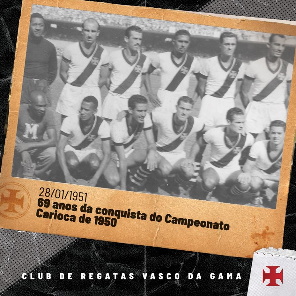 Hoje comemoramos os 69 anos da conquista do Carioca de 1950! Foi o primeiro Campeonato Carioca disputado no Maracanã, logo após a Copa do Mundo. No segundo turno, o Gigante da Colina aplicou goleadas no Flamengo (4x1) e no Fluminense (4x0). Na partida decisiva, com um ponto de diferença do América, o Vascão bateu o adversário por 2x1. Ipojucan deu o passe para Ademir marcar o gol da vitória. #CentroDeMemória