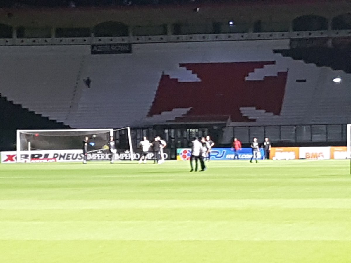 Goleiros do Vasco aquecem no gramado. Portões seguem fechados #trcolina