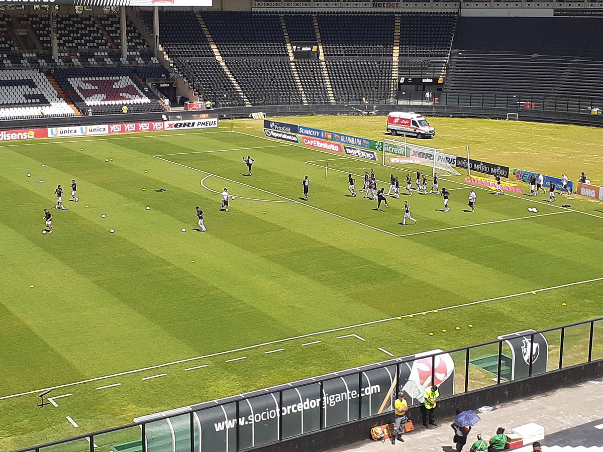 Jogadores do Vasco se aquecem no gramado de São Januário; veja foto