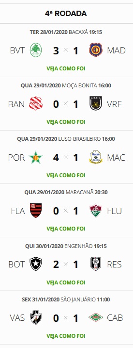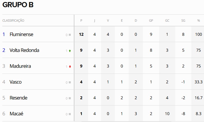 Terminada a 4ª rodada da fase grupos da Taça Guanabara, o Vasco, que perdeu para a Cabofriense por 1 a 0, segue em 4º lugar no Grupo B, mas ficou praticamente fora da disputa por uma vaga na semifinal, pois está 5 pontos atrás do 2º e do 3º colocados faltando 2 rodadas para o fim da fase de grupos.