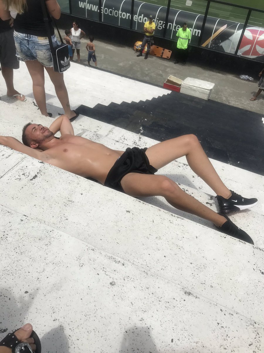 Vascaíno se deitou e tomou sol na arquibancada durante Vasco x Cabofriense; veja foto